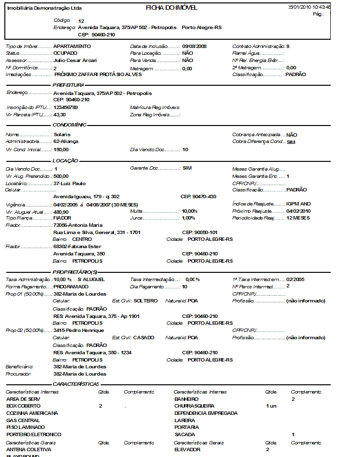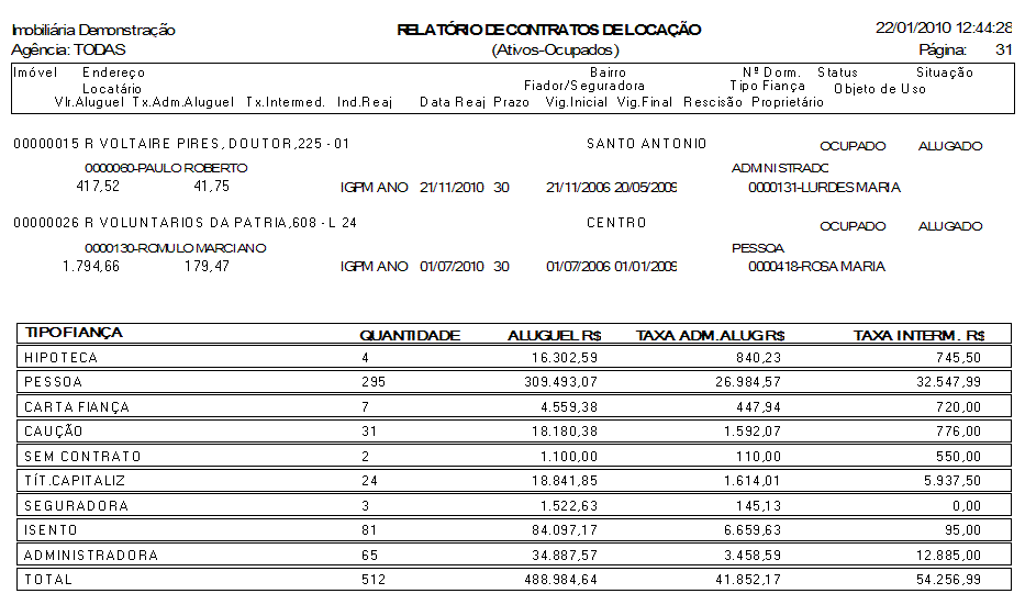 SISTEMA IMOBILIAR - RELATÓRIOS