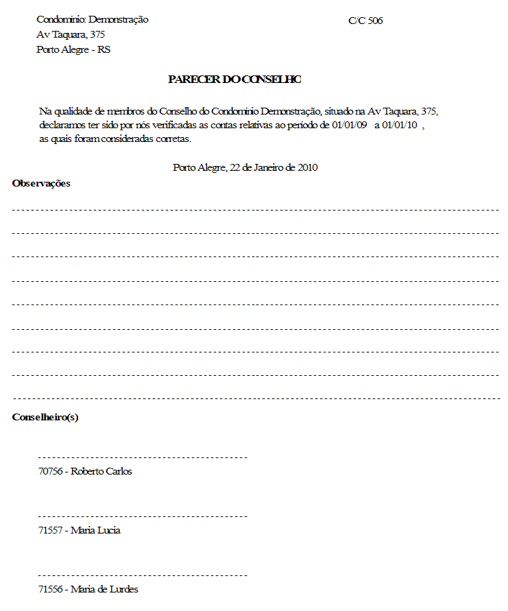 Clique nos itens da lista para apresentar a imagem do relatório correspondente